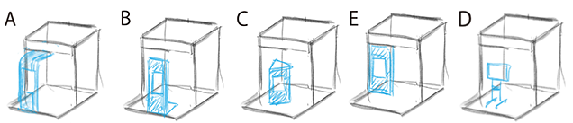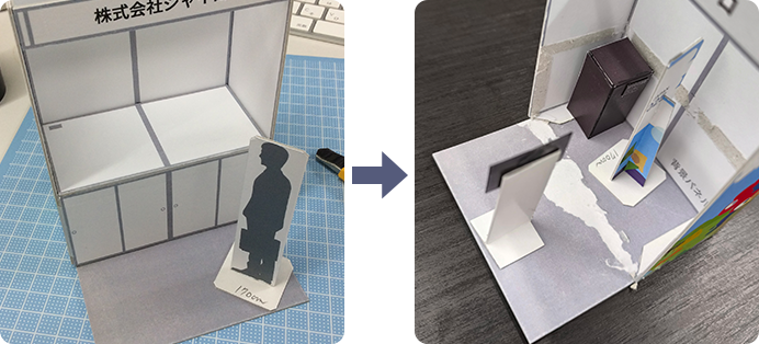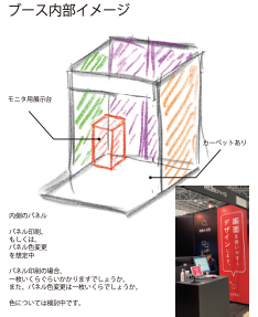 ブースの引き出し付きの棚を取り外せることがわかり、小さなスペースでも体験スペースを確保できる構成が見えてきました。
